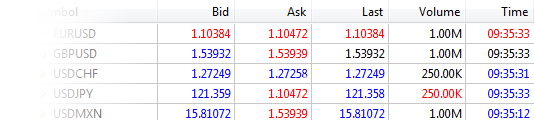 市场观察窗口提供金融工具的价格数据概览: 报价, 价格统计和分时图表。它也提供合约规格的详情, 以及一键交易选项。
